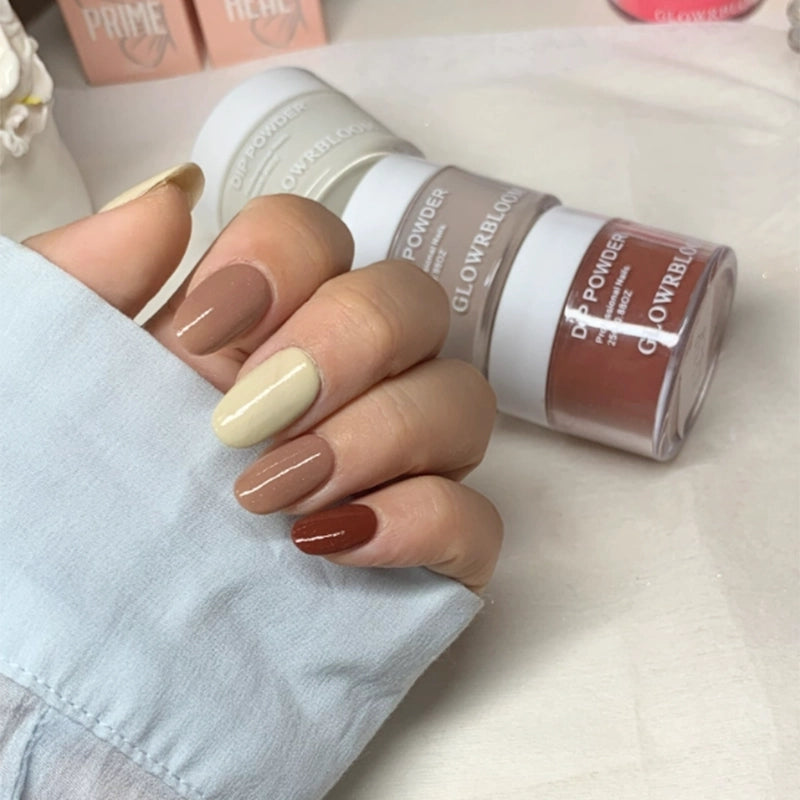 Dip the nail into the color powder for the first layer and wait for about a minute. Then, apply another layer of base liquid and dip the nail into the color powder again. Repeat the process 3-5 times until you achieve the desired effect.